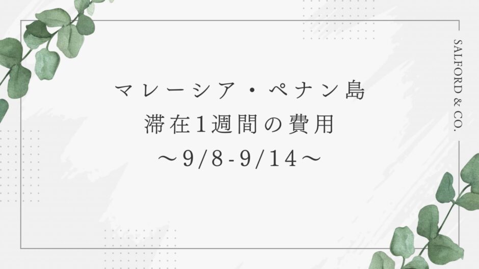 2025年9月8日~9月14日の1週間の費用は、合計39,930円(1,140.85RM)!